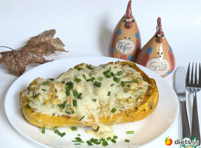 Рецепт «Тыква, фаршированная креветками и сыром»: