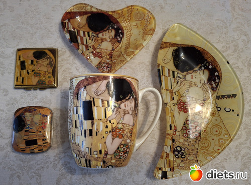 пошли они с внучей до ПВЗ и забрали бабушкины Климт-тарельки коллекции "живопись", которые бабушка не просила забирать. Я вообще-то решила на месте сразу от них отказаться, охладела. не к изобразительному искусству, конкретно к климтовскому "Поцелую". у наших друзей дома на всю стену он висит и теперь только одна ассоциация, как будто заглядываю к ним в дом)))) да и такие маленькие они.. ну чего захламлять дом? всё, у меня включились тормоза. наконец-то)))