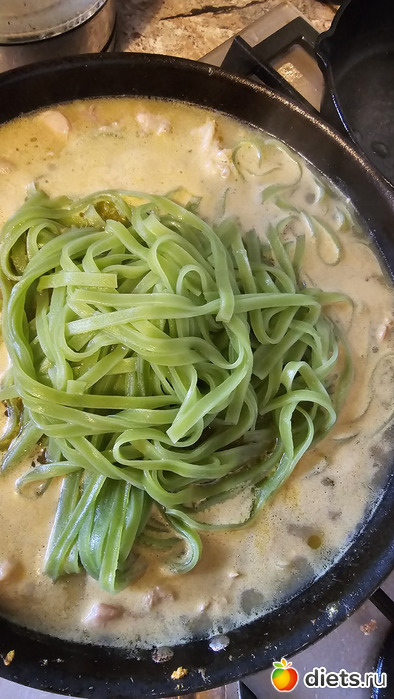 зеленый карри с зелеными рисовыми макаронами (с матчей)