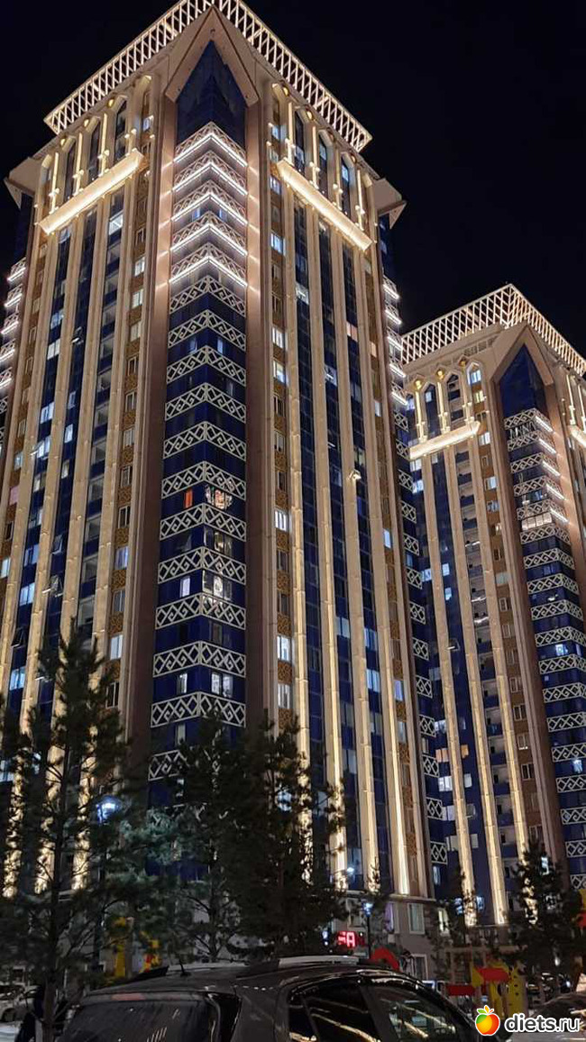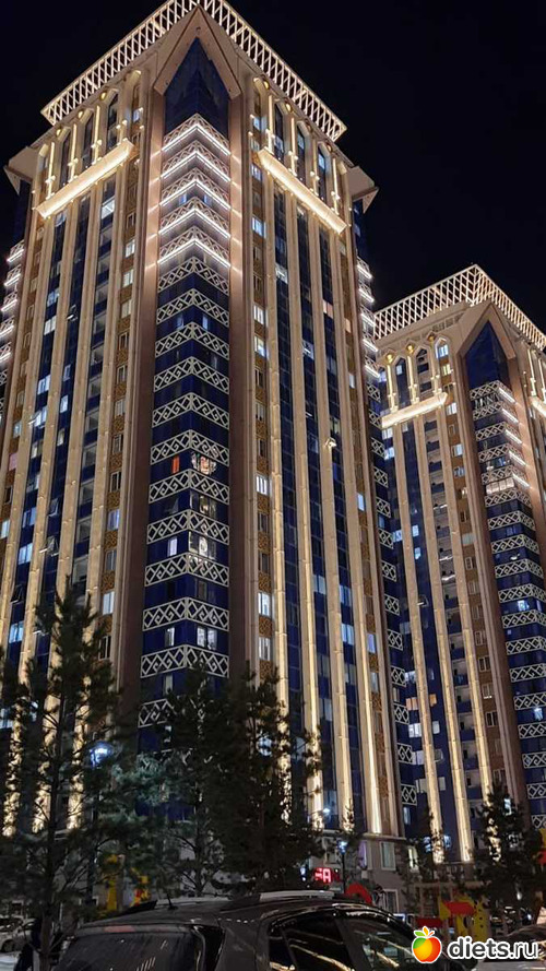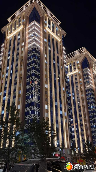 ЖК красивущий, такой с орнаментами. В подсветке вообще волшебно. Но понимаю, что жить в таком не очень бы хотелось, очень уж высотно и много народа