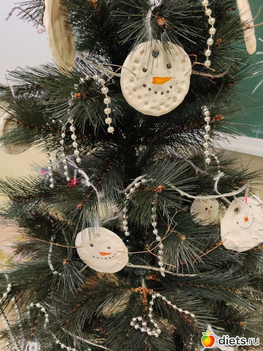 Дети украшали елку снеговиками, которые, как ни странно, из теста