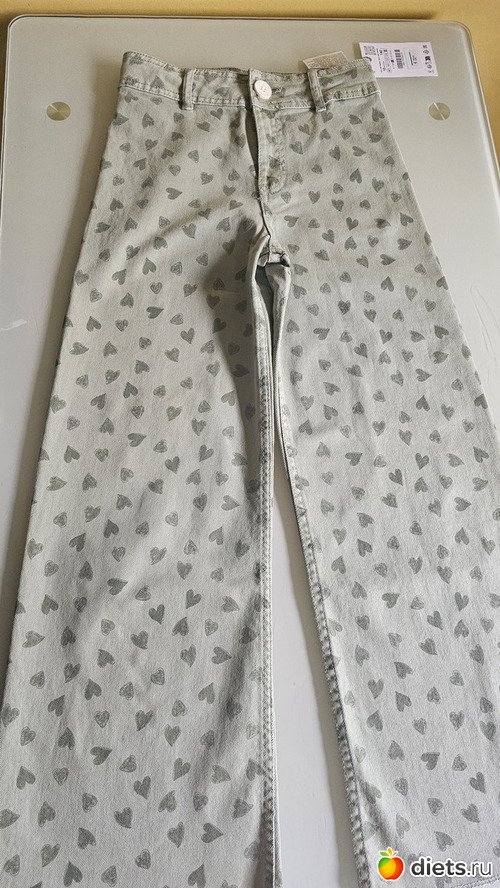 1. Джинсы Zara - зелененькие широкие джинсы с принтом в сердечко