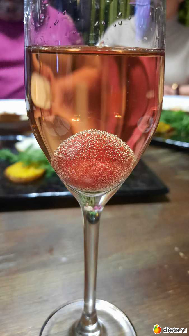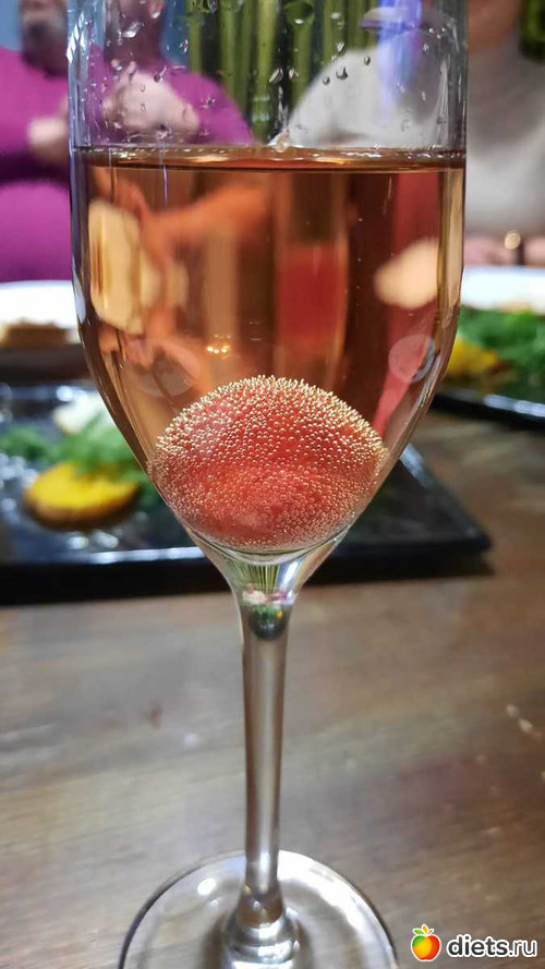 вино какое-то игристое, розовый букет какой-то, забыла, это я туда виноградинку положила