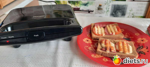 продолжаю пользовать своего нового монстрика. и хоть нет насадки на бутеры, я их пожарила на насадке гриль))) норм так получилось и муж заценил, ему колбасу добавила, себе ПП-бутрики с помидором и сыром на ржаном бутер-хлебушке