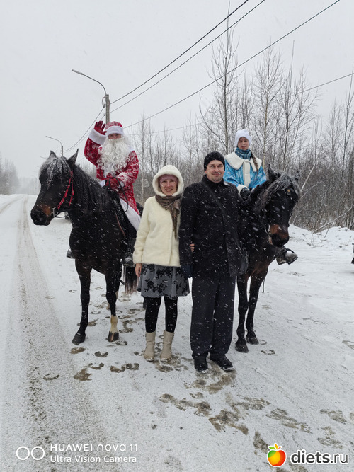 Кофе был какой-то странный, побуждающий желание отправиться в лес, что мы и сделали (елку хотели веточки) Еще более странным выпитый кофе показался когда увидели идущих нам на встречу Деда Мороза со Снегурочкой на черных лошадях