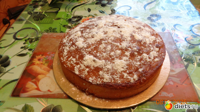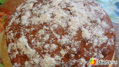 8. Пирог можно покрыть любой глазурью или посыпать сахарной пудрой.
