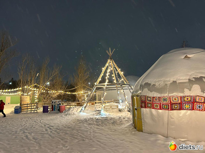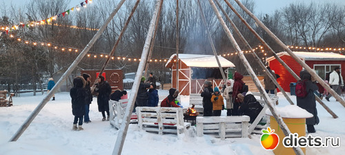 Была прекрасная погода, которая нам это позволила. Шёл снег. Красота! Заранее предупредили, что слишком нарядно в вечерние платья не наряжаться. Форма одежды - зимние тёплые свитера и удобная тёплая обувь. Обещали оленей и катание на хаски))) это брат так пошутил. Но олени были, правда, я их не видела. Я поленилась идти в контактный зоопарк. Потом по видео у Ли посмотрела, там были зайчики, козочки и да, какие-то мини-олени))) детки их кормили.