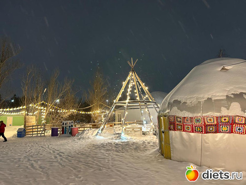 Юрты, подворья, зоны с кострами.