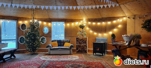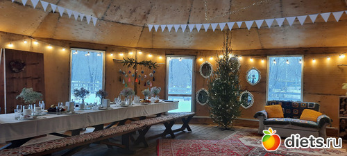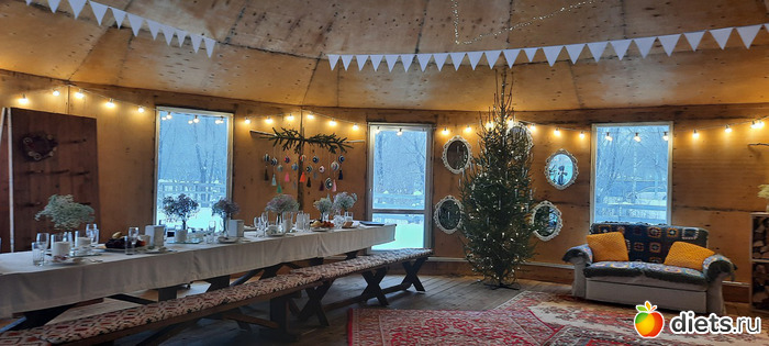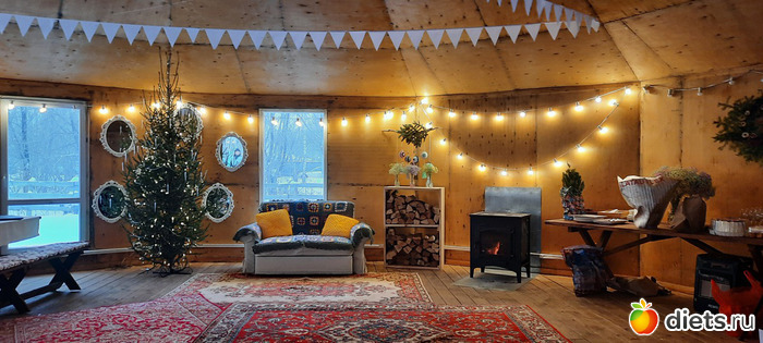 Меня опять удивил культурный микс - и юрта, и ковры с традиционными узорами, и рождественские украшения.