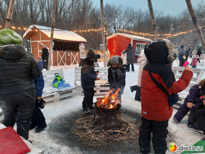 Был очень активный ведущий, который вёл мероприятие. И на улице и потом в помещении. Полтора часа мы, как дети, играли, танцевали, строили башню, кидали унчаки, соревновались, катали шарики по лабиринтам, в общем, веселились. Разделились на две команды, наша называлась "Алёнушки интернешнл", вторая команда - "Йогини", юбилярша у нас в последнее время увлеклась йогой и даже стоянием на гвоздях. Вот в честь неё и назвались. Тот, кто проигнорировал тёплый дресс-код, тот замёрз. Например, мой муж. Вырядился. Хорошо хоть тёплые штаны заставила надеть. У меня тоже замёрзли ноги. Я чёт не поддела тёплые носочки. Но в помещении была печка-буржуйка, ножки свои я быстро согрела)))) Прям села на стульчик, сняла сапоги и протянула к ней ножки.
