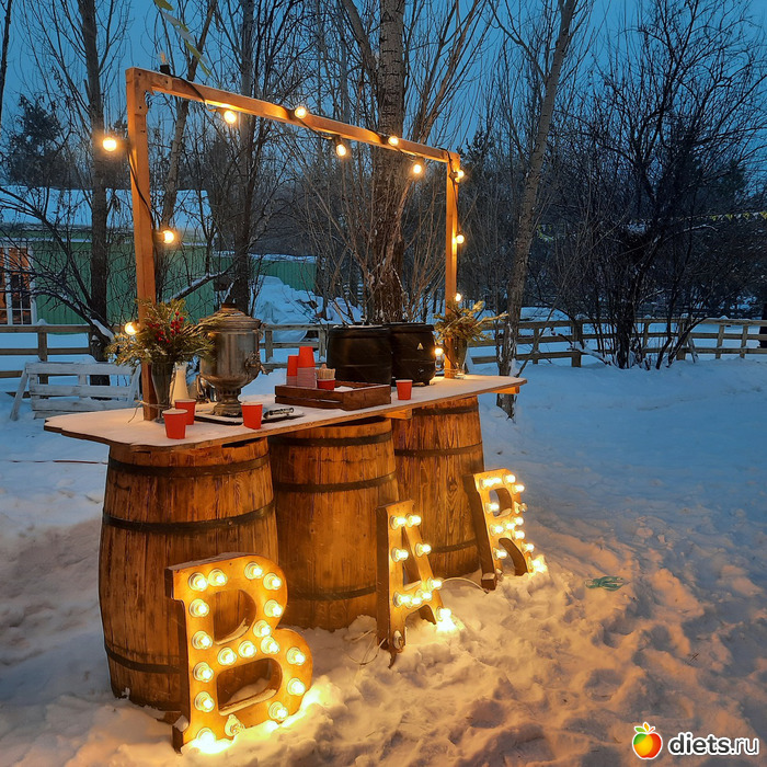 На нашем подворье был бар, за баром - Снегурочка, которая разливала из бочечек нам грог, глинтвейн, а из самовара - чай.