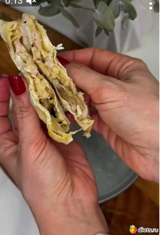 Смешиваем начинку и заворачиваем её в лаваш, как показано на видео.