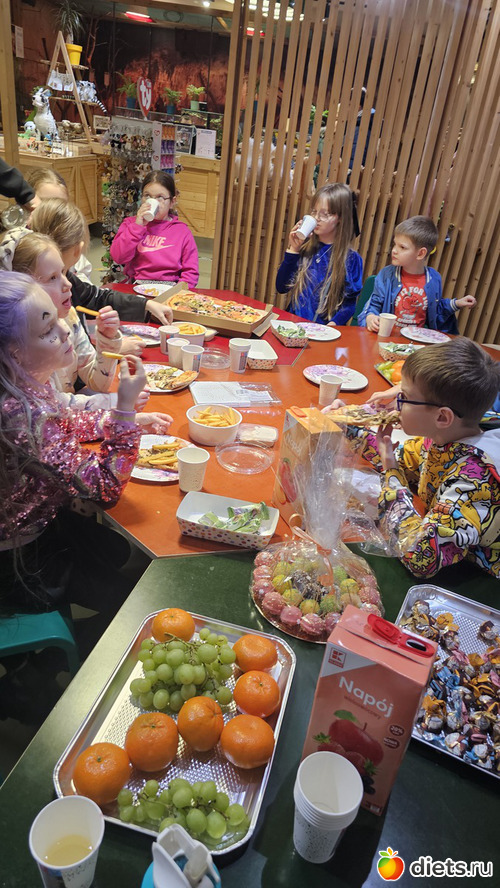 ), конфеты (тоже не особо), чипсы (закончились первыми), пицца (всю сьели), картошка фри (посылали двоюродного брата мужа еще привезти), сок, лимонад. Не хватало воды, дети просили, а не было. Кейк попсы мне не понравились