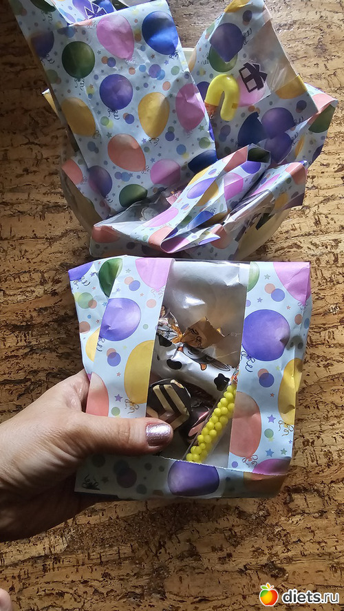 И запаковали таки с конфетами, купленными мужем, дочка села и расфасовала сама