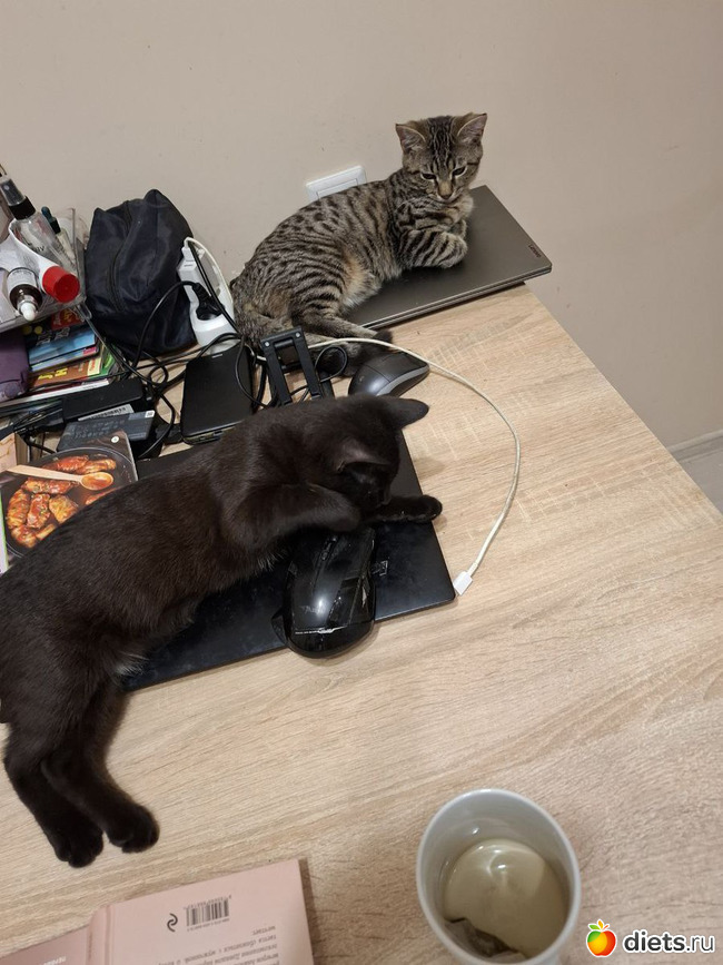 Котики , красатули , твой стол оккупировали , знают , что даже за работой ты найдешь время их погладить