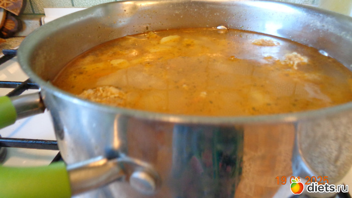 Фарш для приготовления данного супа следует использовать свино-говяжий, однако подойдет и куриный фарш в том случае, если вы хотите, чтобы суп вышел менее калорийным. Если лапша слишком длинная, разломаем ее пополам