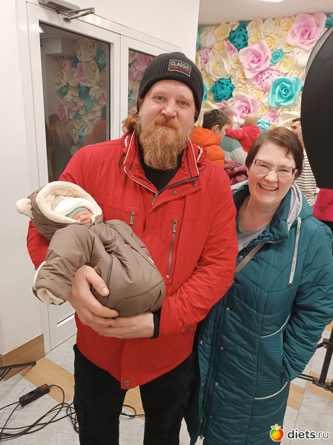 Вам же наверняка не терпится узнать, что там у меня и как. Даже если терпится, постарайтесь сделать максимально заинтересованный вид, вам не сложно, а мне очень даже приятно. Итак, долго ли, коротко ли, я ходила с вот таким пузяо (вытягивает руку впереди себя), а потом ещё какое-то время с вооооот таким (тянет руку ещё сильнее вперёд). И знаете что? Спорим, вы ни за что не сумеете догадаться! Я родила! Фантастика, правда? Я, и родила, самой не верится. Ну правда не совсем родила, это было кесарево сечение, но вроде говорят, что это тоже считается, и сын вполне себе мой. 25 ноября 2024 я стала матерью дракона и стрельца по совместительству. 3690гр и 53 см крепенький, ладненький и вообще мамина бесконечная радость и солнышковость. Приличных парадных красивых фоток с выписки из роддома у меня нет, встречал меня только муж, и мне хотелось просто поскорее сбежать домой. Вот такая фотка есть, я, довольный папаня и мелковость где-то в глубине комбинезона. Муж таки официальный, мы умудрились поставить государство в известность о наших отношениях за 13 дней до появления на свет дитёныша.