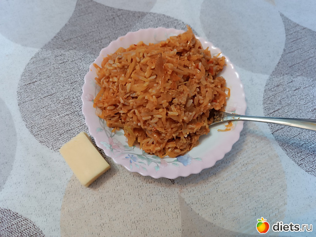 Обед: ленивые голубцы, кусочек сыра, ещё был кофе без ничего.