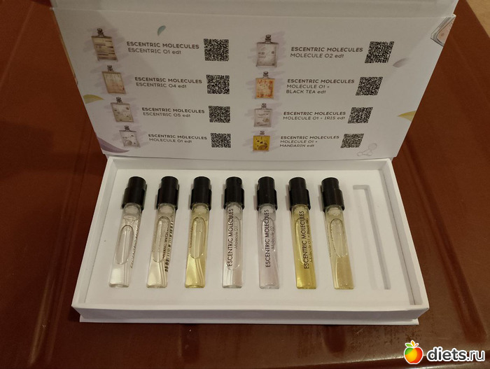 А это набор духов Молекула, разных, я хотела попробовать что-то новое, выбрать себе запах, и она мне подогнала вот такой набор, за ним пришлось топать к постаматам))