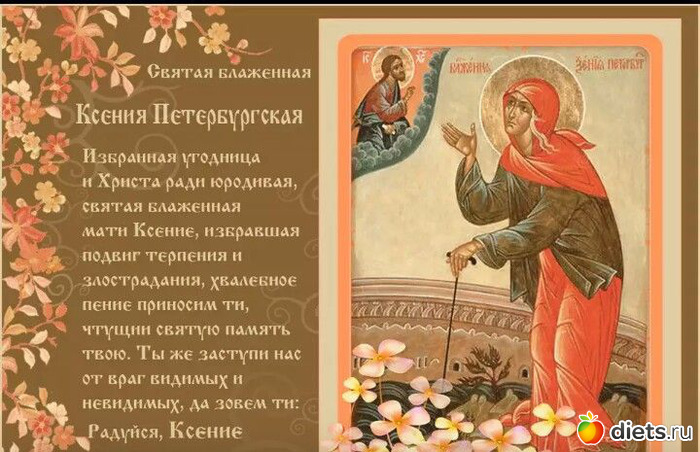 6 февраля – день памяти святой блаженной Ксении Петербургской;