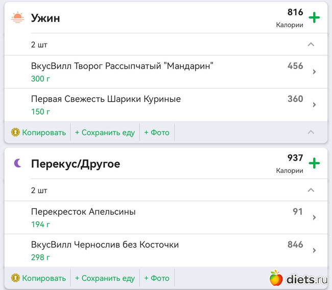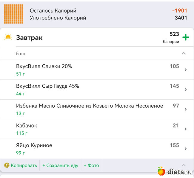 Калорийность продуктов