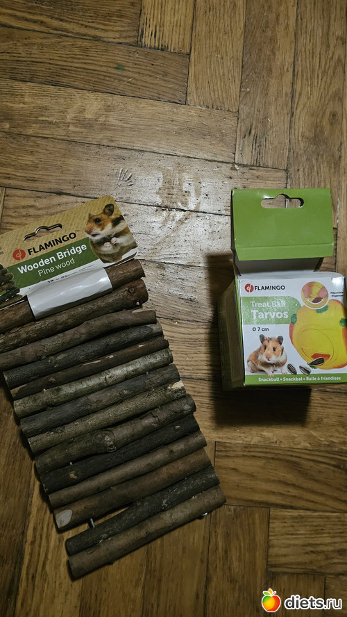 Купили несколько игрушек и деревянный мостик, что бы ему было удобно выходить из клетки.