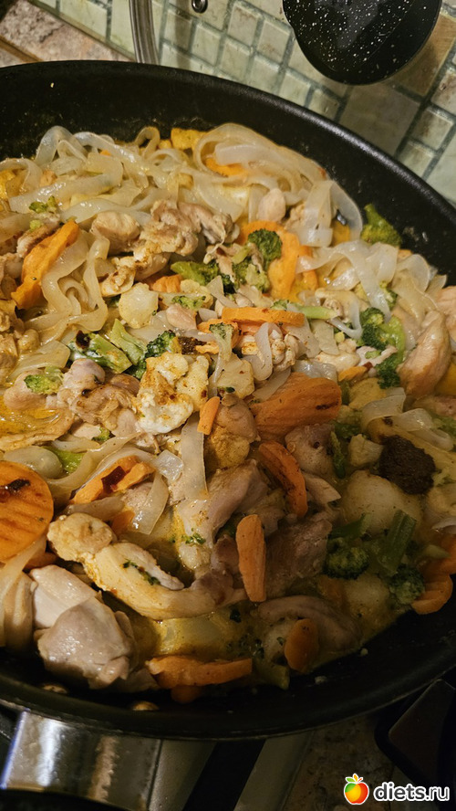 Красное карри на кокосовом молоке (курфиле, заморозка микс и макароны 6 ккал)