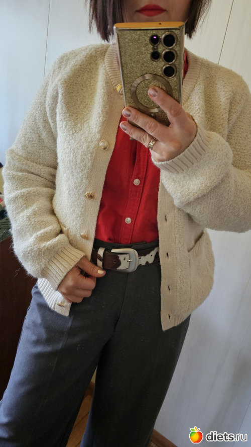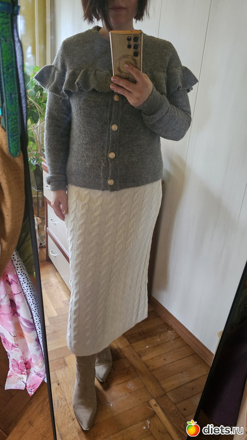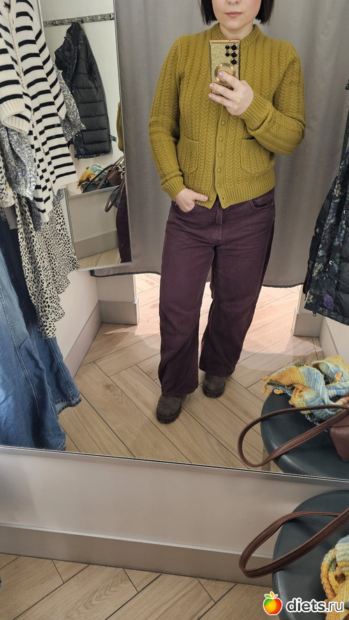 В воскресенье ездила по магазинам на автобусе, одевалась тепло и удобно. Джинсы и кардиган 100% шерсть
