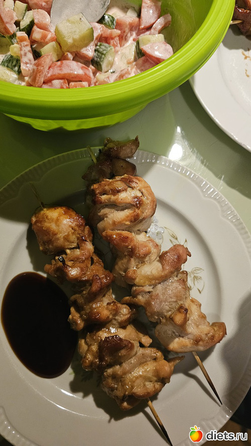 Старший сын готовил курогрудь на шпажках в соусе терияки. Очень вкусно и очень просто