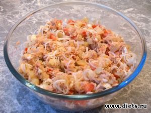 Заправить майонезом.