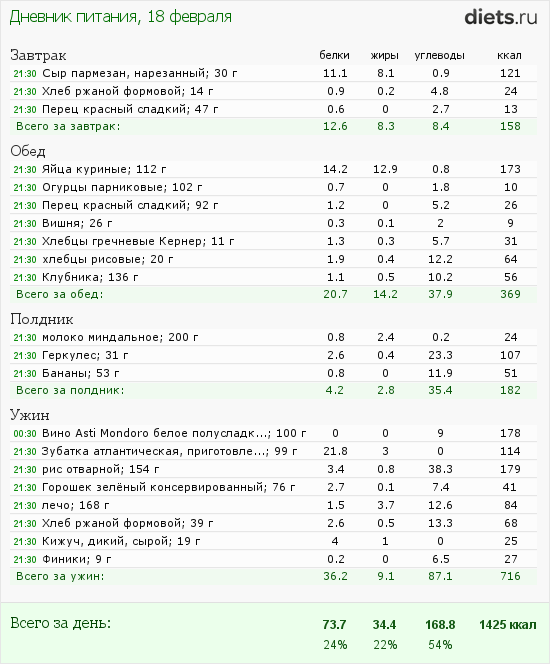 Ну оооочень давно не считала я свой рацион. Почему бы и не посчитать сегодня? Подумано - сделано!