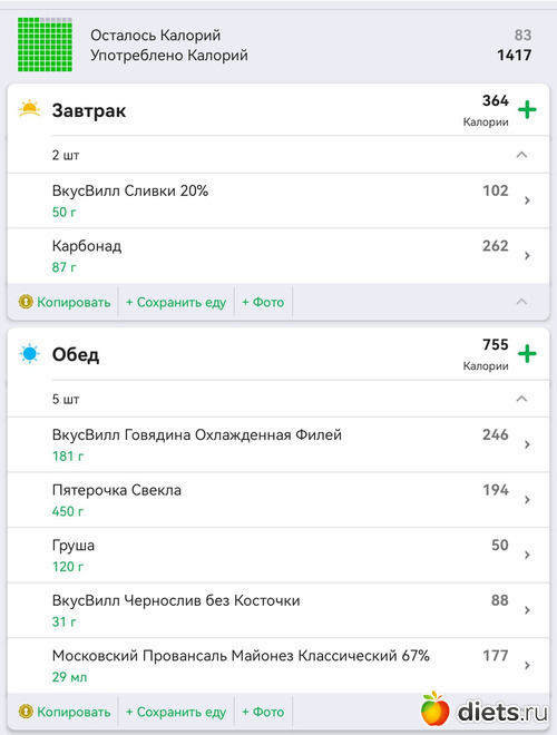 Калорийность продуктов
