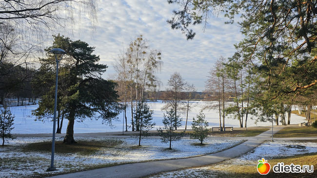 Озеро Друсконис подо льдом. Летом тут фонтан, можно покататься на катамаранах