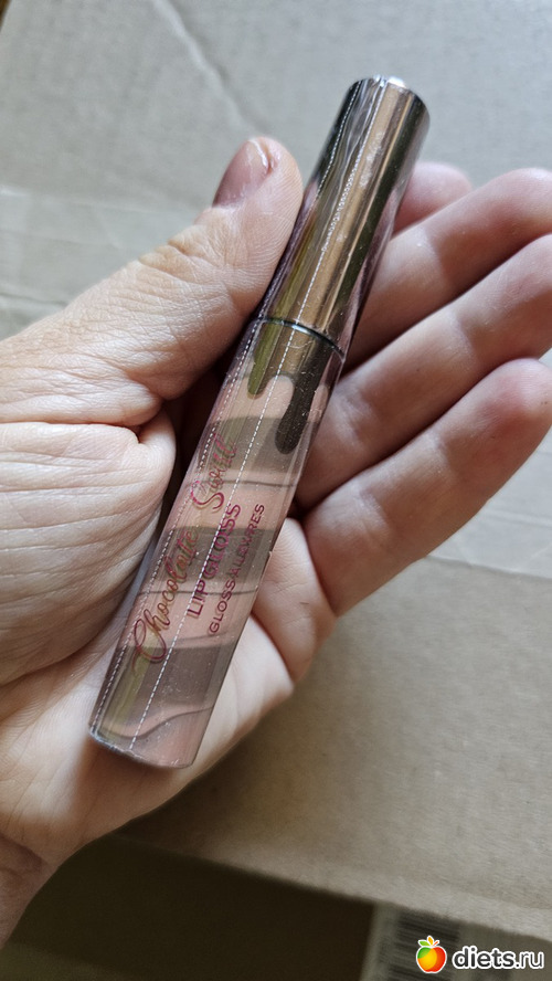 Блеск для губ с запахом шоколада. Запах отличный, но блеск на мне какой-то белесый, не угадала с оттенком