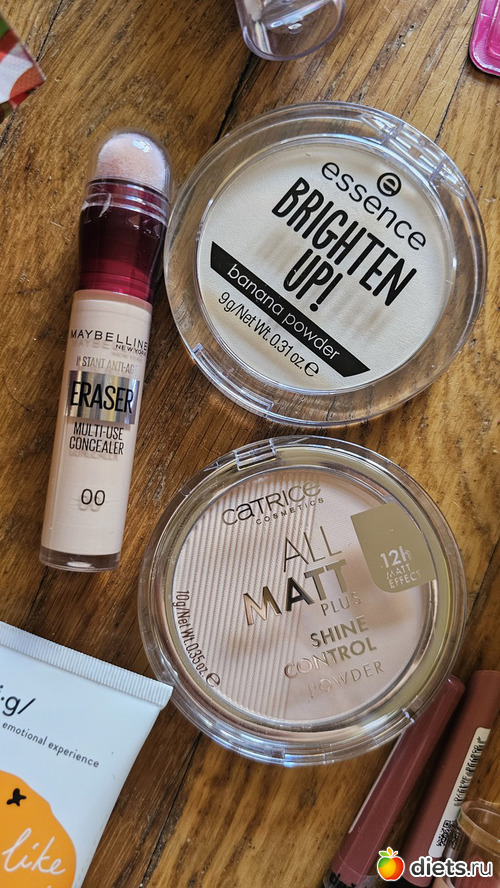 Консилер и пудры, обычная прозрачная и банановая под глаза