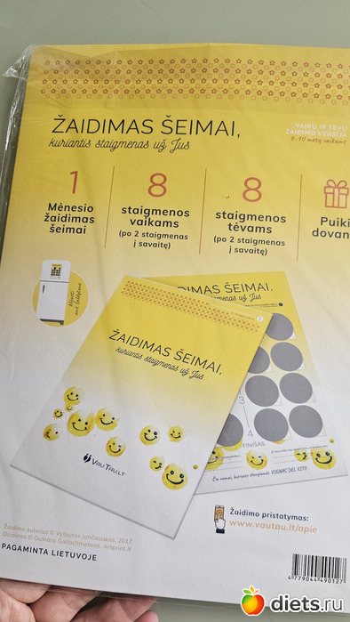 Это такая игра для детей и родителей. Я покупала аналогичную для пары. Смысл этой игры в том, что ребенок и родитель выполняют задания-сюрпризы друг для друга. Игра рассчитана на месяц, по 2 задания в неделю. Паре задания были, например: подарить подарок, сказать комплимент, написать письмо. А что они придумали для детей и родителей, даже не представляю