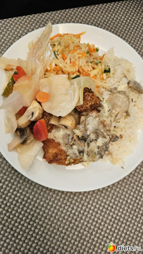 Курфиле в панко, рис и те же овощи