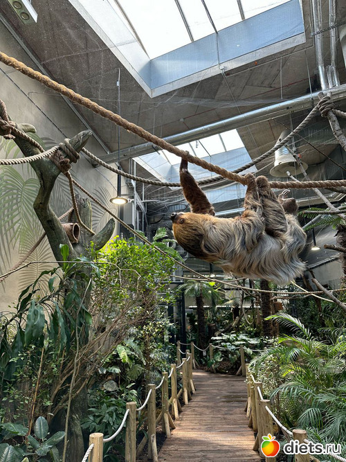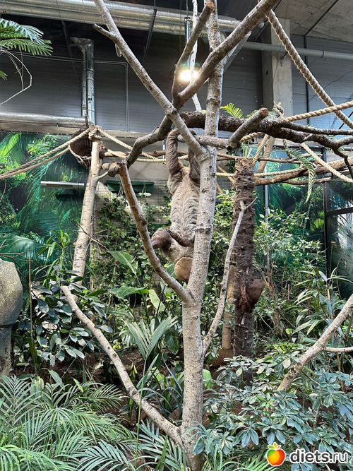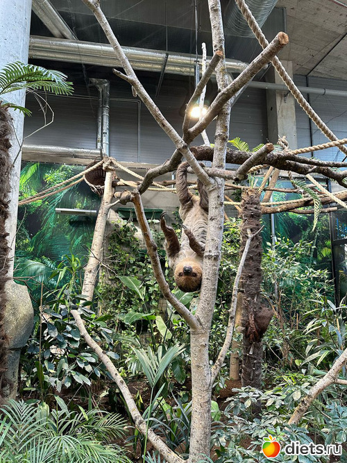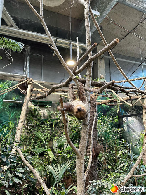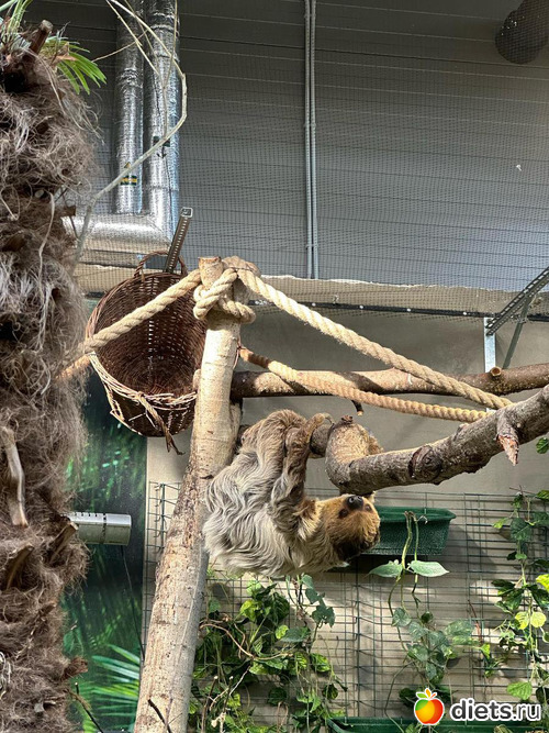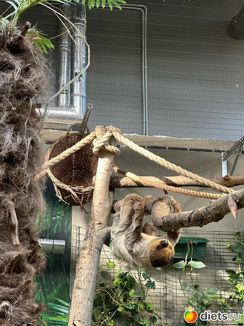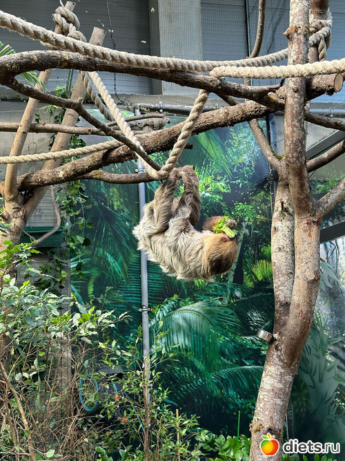 ленивец Диего. Спит 20 часов в сутки, просыпается к 11 утра на кормежку и к вечеру ненадолго. Иногда не просыпается на кормежку, тогда в этот день не ест