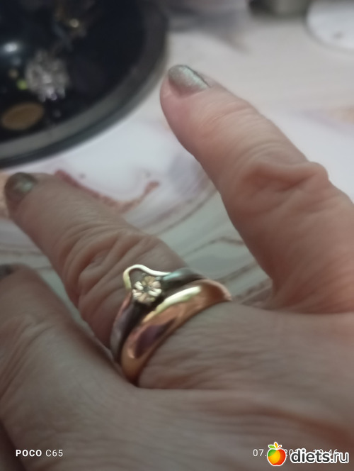 Вчера на ВБ получила стеганый жилет на весну, чудесного лилового цвета, кое-какую мелочь и золотое малюсенькое колечко в целых 0,3 г. Третье на один пальчик. Я с тонким обручальным ношу серебряное с золотой накладкой и микроскопическим бриллиантом (реально в микроскоп только и видно), и сверху вот такое тонюсенькое золотое захотелось