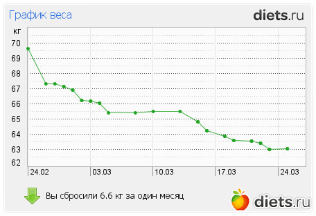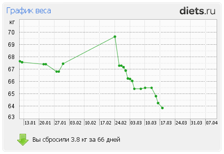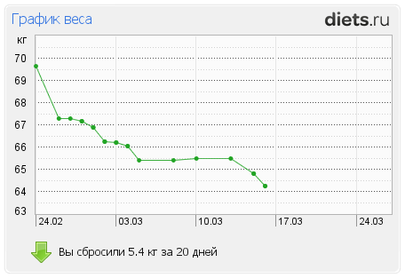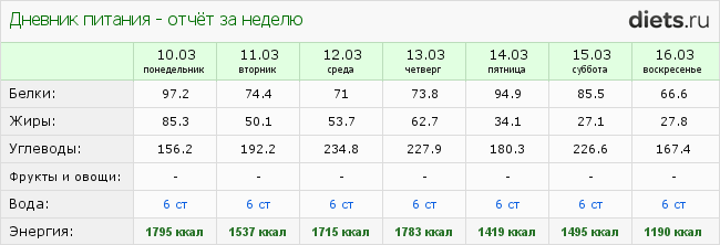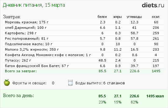 1400 ккал в день. Б-Ж-У: 27% – 25% – 48% На рыбе минтай и картошке. Без физической нагрузки.