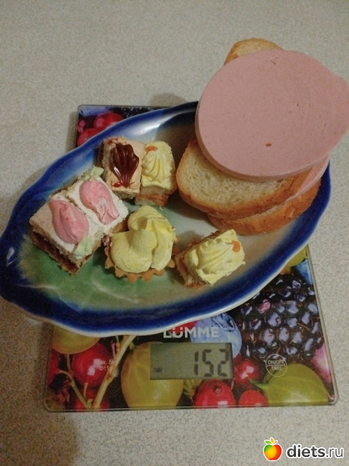 Я же не говорю голодать! Но уменьшить майонез, убрать сосиски, уменьшить пироженки и добавить овощей надо. Всего должно быть в меру и еда должна постепенно приходить к такому виду, чтобы вес так больше не рос.