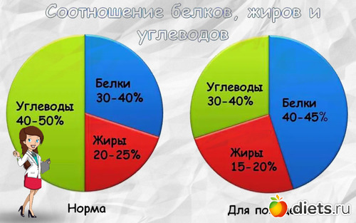 А вот по распределению между белками, жирами и углеводами... + как распределить это в течении дня - немного запуталась
