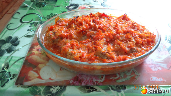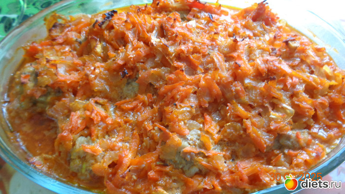 16. Накрыть фольгой форму. Запекать тефтели в духовке при 200 градусах 20 минут.
