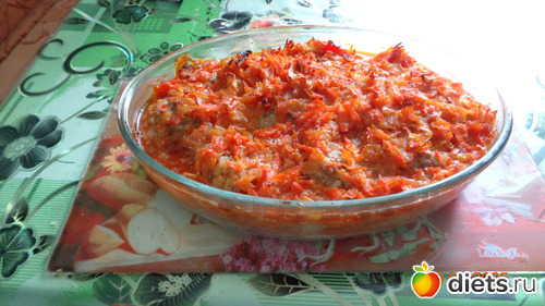 Упрощённый способ приготовления тефтелей - без предварительной обжарки. Формируем тефтели из говяжьего фарша с луком, зеленью и отварным рисом, готовим соус-заливку из обжаренных овощей и томатной пасты - и запекаем всё вместе в духовке.