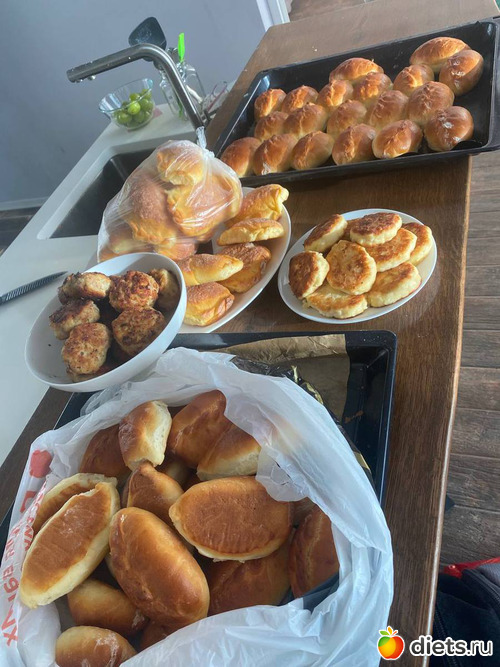 Ну а я вместо именинного торта пекла мужикам в дорогу пирожки с яблочным повидлом, сочни с творогом, котлеток нажарила.