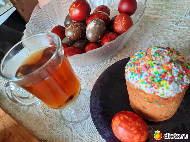 что внуки уговорили яйца покрасить и испечь куличи.