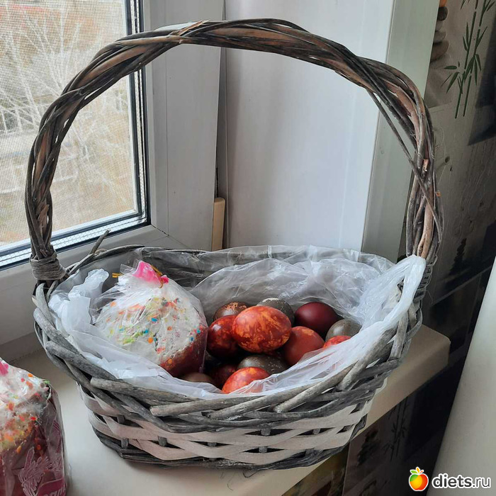 в корзиночке вчера снесла яички и куличи в церковь, освятила