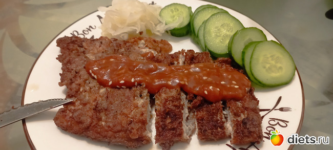Тонкацу - корейский вариант отбивной из свинины. Соус тоже тонкацу.