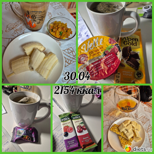 цель на апрель та же: 4х разовое питание, исключить булки и сладости, кофе без сахара и молока и постараться уменьшить ужины!