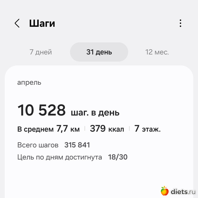 цели на апрель: шаги всё также (10000 + выходные) и максимально приблизиться к 300000